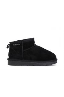 Bottines à la cheville en daim et intérieur en fausse fourrure. Logo en métal.