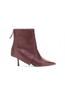 bottines à revers en cuir bordeaux