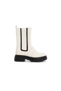 Bottines en cuir bicolore avec élastique latéral et logo CN imprimé à chaud. Semelle « char d’assaut »