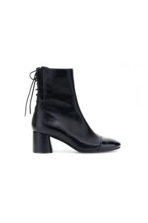 Bottines effet cuir à bout verni et laçage à l'arrière. Talon bloc de 6 cm. Un design couture et des détails audacieux pour un style urbain chic qui ne passera pas inaperçu.