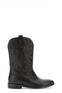 Bottes en cuir à motif en relief sur la tige, doublure en tissu et semelle intérieure en cuir. Petit talon de 2,7 cm. Un style affirmé et audacieux, idéal pour l'hiver.