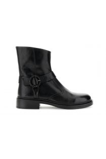 Bottines en cuir avec boucle décorative recouverte. Design simple et contemporain, semelle intérieure en cuir et talon de 4 cm. L'élégance urbaine au quotidien.