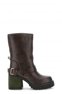 Bottines en cuir noir avec bride et boucle à la cheville, talon de 9 cm, revêtement effet daim et semelle crantée. Fermeture éclair intérieure et semelle intérieure en cuir. Un modèle audacieux et élégant pour l'hiver.
