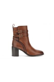 Bottines en cuir à double boucle latérale et fermeture éclair intérieure. Une semelle intérieure en cuir et un talon de 7,3 cm leur confèrent une élégance audacieuse et contemporaine.