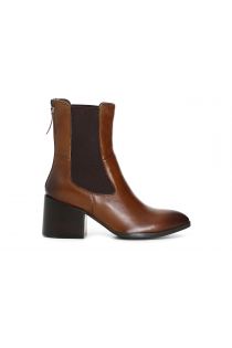 Bottines en cuir avec talon mi-haut. Élastique latéral pour les chausser plus facilement et fermeture éclair à l’arrière.