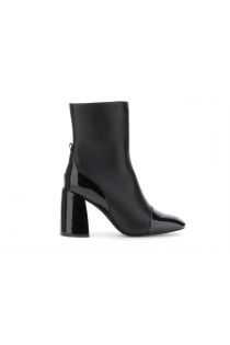Bottines en cuir avec empiècements en cuir verni brillant, parfaites pour un look sophistiqué et glamour. Une semelle intérieure en cuir et un talon sculptural de 8,5 cm apportent une touche d'élégance.