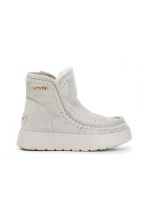 Bottines en daim avec glitters avec doublure en similicuir. Logo en métal et semelle surélevée. Des surpiqûres apparentes décorent la bordure.