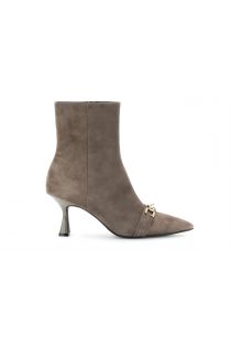 Bottines en daim avec une élégante boucle dorée, semelle intérieure en cuir et talon aiguille de 7,5 cm. Parfaites pour une allure féminine et raffinée du matin au soir.