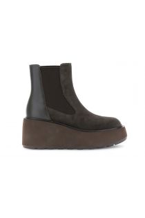 bottines en daim et cuir avec élastique dark brown
