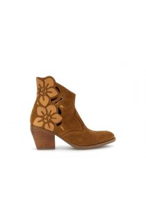 bottines en daim perforé à fleurs tan