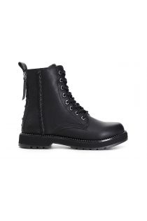 Bottines à lacets en similicuir avec fermetures éclair à l'arrière et détail latéral extérieur avec fils apparents et cabochons. semelle à trépointe arrondie.