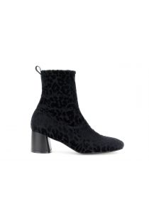 Bottines en tissu stretch floqué à pois ton sur ton. Leur talon épais de 6 cm et leur coupe confortable apportent une touche audacieuse et tendance à toutes vos tenues.