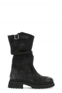 Bottines montantes en nubuck à plis souples et bride cheville. Semelle intérieure en cuir, semelle crantée et talon de 5,5 cm. Un style audacieux pour un look urbain contemporain.
