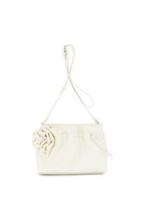 Sac bandoulière souple à plis en matière effet nappa orné d'une applique rose assortie. design élégant et féminin avec bandoulière amovible pour une utilisation polyvalente de jour comme de soir. dimensions : 23 cm (longueur) × 15 cm (hauteur) × 10.5 cm (profondeur)
