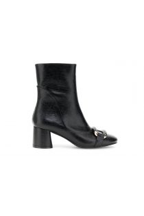 Bottines pour femme en similicuir avec bride avant dorée. Confortables et dotées d'un talon bloc de 6 cm. Élégance et confort en toute occasion.
