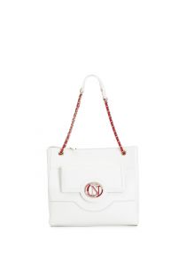 cabas avec accessoire émaillé ovale et chaîne enfilée cream