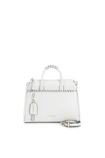 Cabas pour femme avec poignées tressées poche avant avec détail enfilé et breloque décorative. élégance et fonctionnalité pour un look sophistiqué et pratique.
