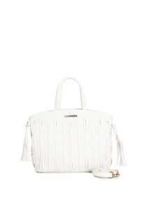 cabas avec filetage mignon, côtés froncés avec nœud et pompon white