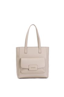 Sac shopping en matière synthétique avec poche avant avec logo et application de rivets. compartiment interne unique avec poche zippée.