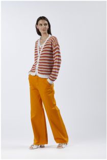 Cardigan multicolore en fil de coton mélangé avec travail au crochet. vêtement de base parfait pour le style années 70. à combiner avec un jean flare ou une maxi jupe.
