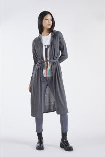 Cardigan style robe de chambre long en fil de cachemire mélangé avec des détails en lurex contrastants
