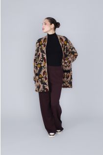 Gilet long ceinturé en maille jacquard florale. Coupe confortable et maille chaude et enveloppante, idéal pour des looks décontractés élégants. Le mannequin mesure 172 cm et porte une taille S.