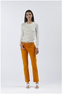 Cardigan ras du cou à manches longues avec boutons dorés apparents. cardigan en fil de viscose mélangé.