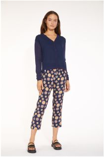 Cardigan réalisé avec un mélange de fil de viscose et de tissu.