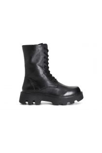 Bottines pour femme unicolores en cuir à lacets. semelle intérieure et semelle « char d’assaut » en cuir.