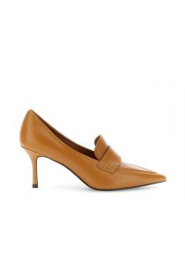 Escarpin en cuir style mocassin avec un talon fin de 7,5 cm. Une silhouette élégante qui sculpte votre démarche, une élégance essentielle qui caresse la peau et enchante chaque pas.