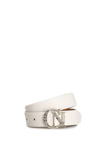 ceinture en cuir avec boucle en métal logotée et strass cream