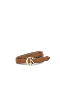 Ceinture pour femme en cuir véritable avec boucle en métal ornée du logo et surpiqûres contrastées.