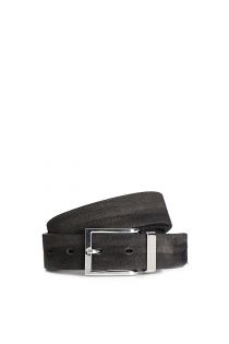 Ceinture réversible pour homme en cuir et daim avec boucle en métal.