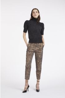Chandail à col roulé élégant avec manches courtes bouffantes réalisé en un mélange de fils chauds