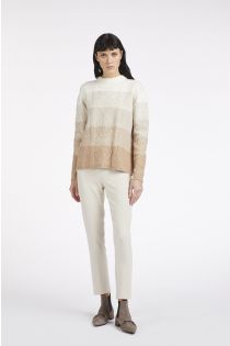 Chandail spécial nuancé en point de tricot tressé. Ouverture en portefeuille dans le dos
