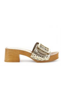 Chausson avec tige perforée. talon épais de 6 cm de haut.