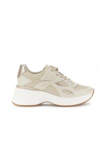chaussures de course à lacets en cuir enduit et mesh beige