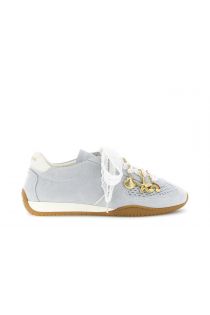 Chaussures de running à lacets pour femme en daim perforé. lacets et breloques dorées amovibles sur le thème nautique. doublure en tissu semelle intérieure en cuir semelle extérieure en caoutchouc de 2 cm. un look à la fois ludique et ultra-glamour.