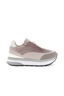 Chaussures de running pour femme en velours noir et cuir lisse, semelle de 4 cm. Doublure en tissu et semelle intérieure en cuir. Logo latéral avec monogramme Café Noir. Confort et style pour un look sport-chic au quotidien.