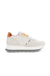Baskets à lacets pour femme en daim et tissu. logo argenté latéral avec monogramme cafènoir. hauteur de la semelle 30 mm. assise plantaire interne.