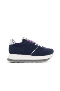 Baskets à lacets pour femme en daim et tissu. logo argenté latéral avec monogramme cafènoir. hauteur de la semelle 30 mm. assise plantaire interne.
