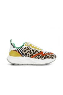 Chaussures running à lacets avec inserts multi animalier en daim. logo latéral gaufré avec le monogramme cafènoir. semelle en caoutchouc caractérisée par un jeu de rainures qui rend la chaussure unique.