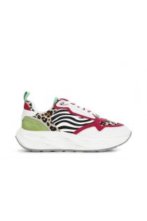 Chaussures running à lacets avec inserts multi animalier en daim. logo latéral gaufré avec le monogramme cafènoir. semelle en caoutchouc caractérisée par un jeu de rainures qui rend la chaussure unique.