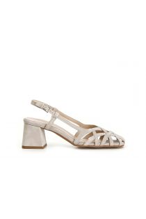 Chaussures en daim avec effet cage asymétrique tressée. talon de 5 cm gainé avec le même cuir