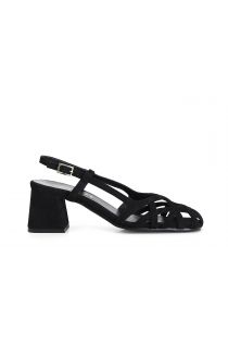 Chaussures en daim avec effet cage asymétrique tressée. talon de 5 cm gainé avec le même cuir