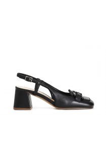 Chaussures en nappa enrichies d’attache. forme arrondie de la chaussure. bride au dos. talon haut de 45 mm. un mix entre mocassins et escarpins. très confortables parfaites pour un usage quotidien.