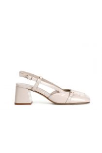 chaussures ouvertes derrière en verni avec bordure et bride powder