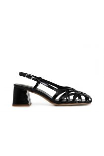 chaussures ouvertes en verni avec cage tressée asymétrique black