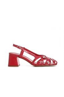 Chaussures ouvertes en verni avec cage croisée asymétrique. forme arrondie de la chaussure. bride au dos. talon haut de 45 mm. très confortables parfaites pour un usage quotidien.