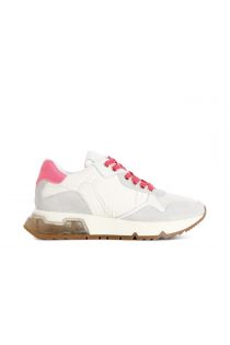 chaussures running femme en nylon et daim white/fuchsia